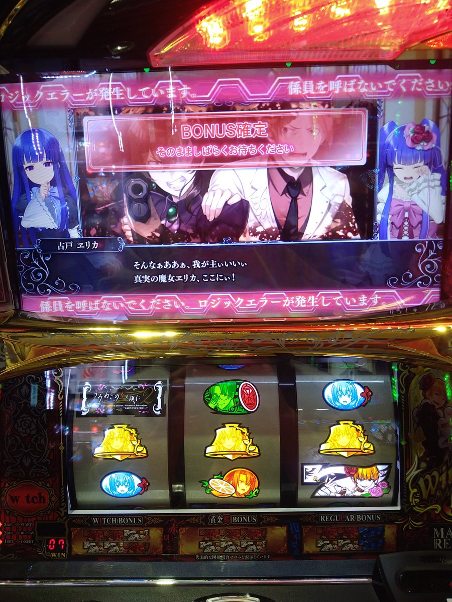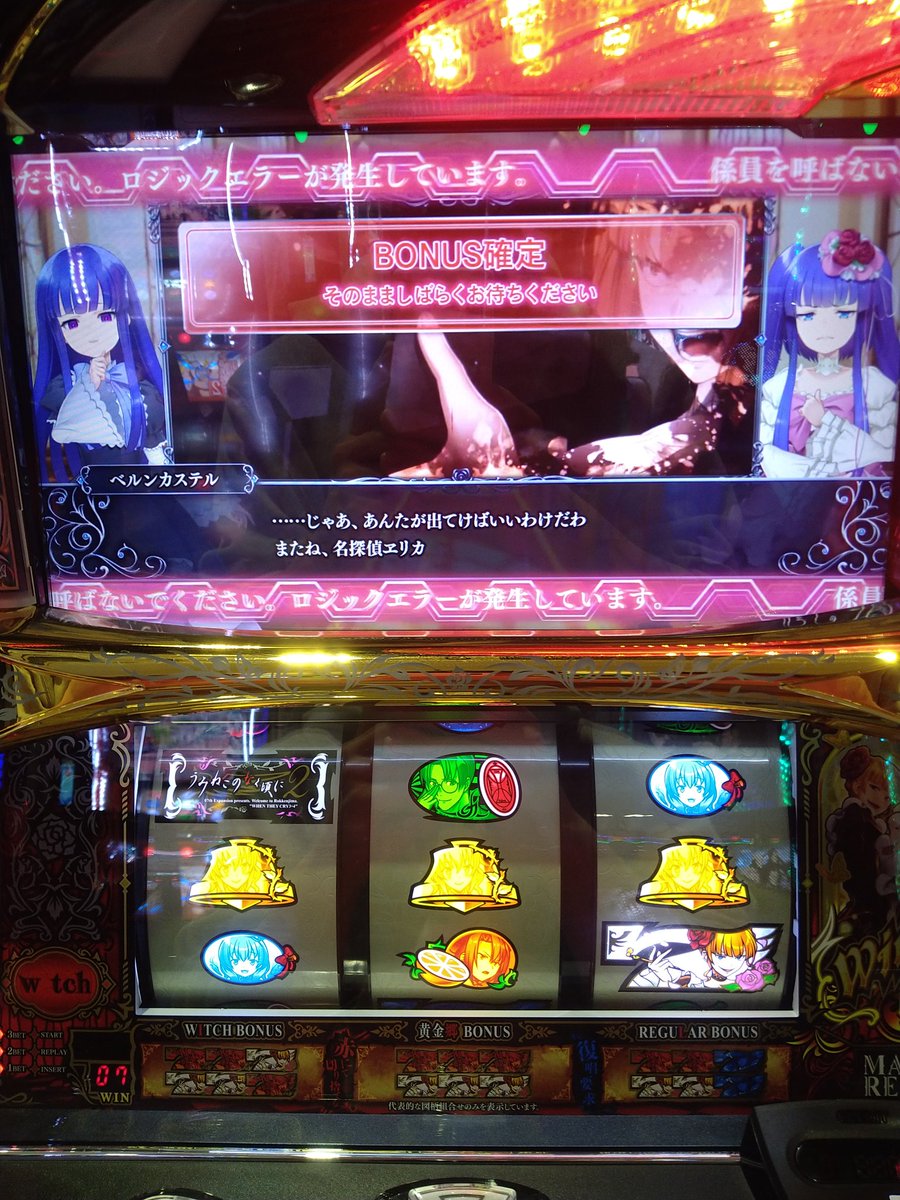 うみねこで初めてベルフリ引きました。でも、出玉は振るわず