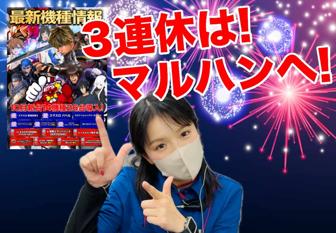 投稿本文: 秋の連休到来‼️エンターテイメントの秋🌇この3連休はぜひマルハン此花島屋店へ🌟連日朝10時オープン‼️パチンコ大幅レイアウト変更🌈 さらに表示