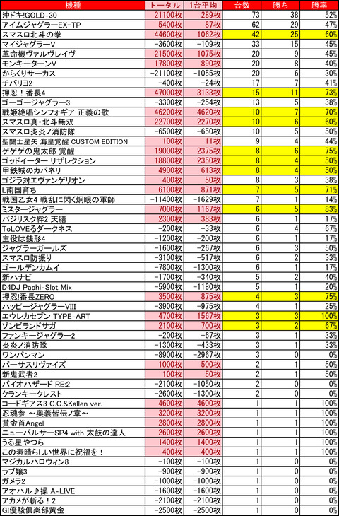 【8/8 プレイランドハッピー南6条店】8のつく日→集計結果