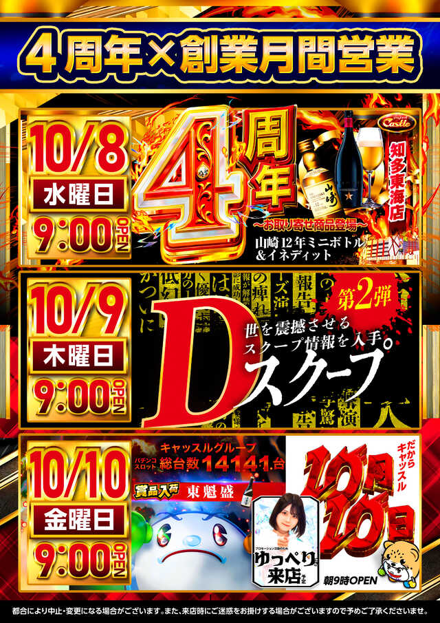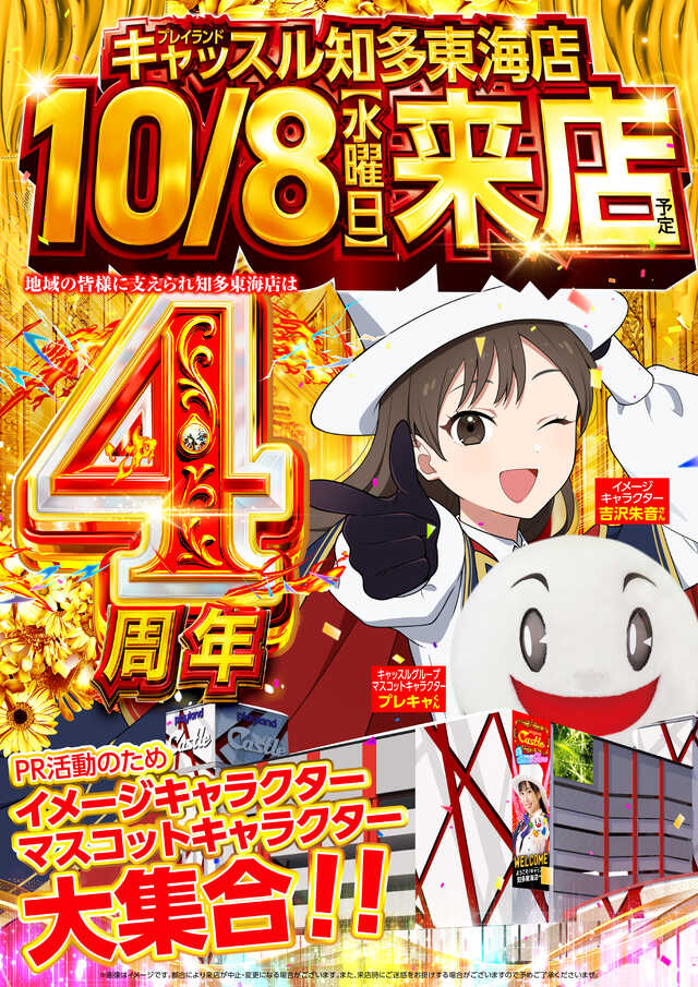 投稿本文: 10月8日(水)PickUp・プレイランドキャッスル知多東海店<周年>10/8(周年)~10/10(特日重なりの月ゾロ日)は、周年期間として、連日打てるのが「知多東海」。で、中でも本命は周年日。まあ🏰の周年・年一は安定感抜群ですよね🙆♂️「知多東海」は去年も◾️総差枚+104,200枚/台平均+390枚 さらに表示