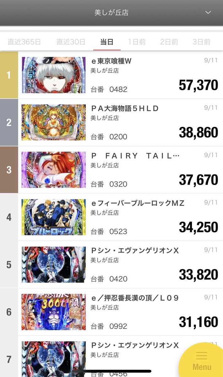 投稿本文: R7.9.11 マルハン美しが丘店 出玉ランキング🏆 さらに表示