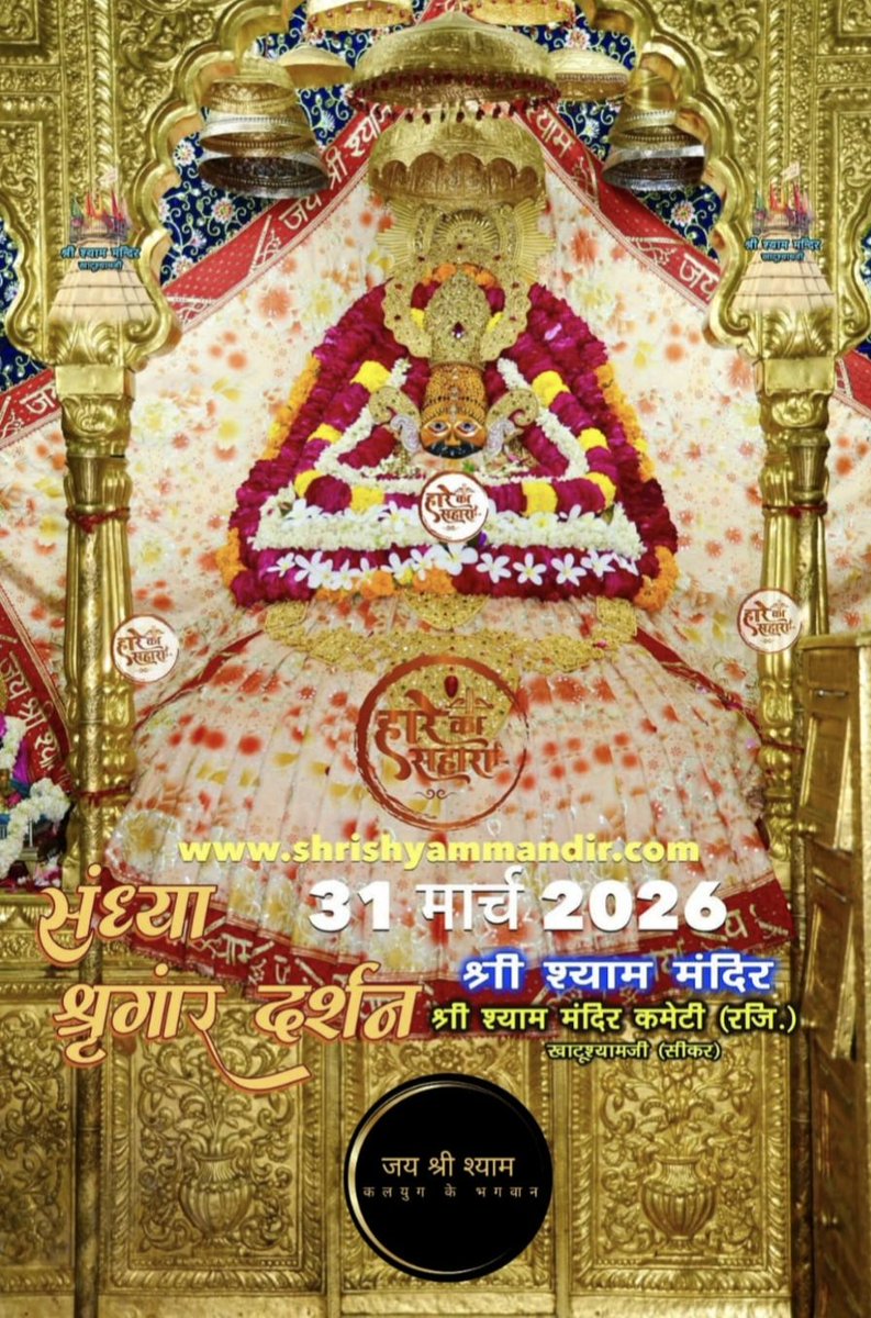 投稿本文: 🙏 जय श्री श्याम बाबा 🙏 श्याम बाबा की "मनमोहक छवि" के आज दिनांक 31.03.2026 के संध्या श्रृंगार दर्शन -ll खाटू श्याम बाबा की कृपा सभी भक्तजनों पर बनी रहे ll#जयश्रीश्याम #khatushyamji #shyam#shorts #reels さらに表示