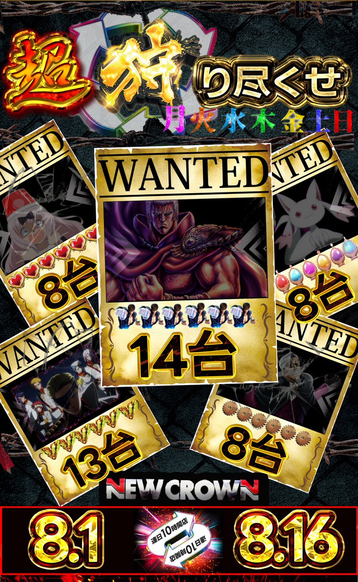 投稿本文: 8/1ニュークラウン川越2号店・超狩尽くせ明日からリスタートでローテはじまるので個人的に毎日予想してみる🥷📝ローテ期間・8/1〜8/16・対象機種: 北斗,ヴヴヴ,かぐや,からくり,マギレコ質良し+ほぼ毎日各機種に対象機種🈶今日までのローテ2周目機種などはそれも加味したうえで狙うかな。 さらに表示