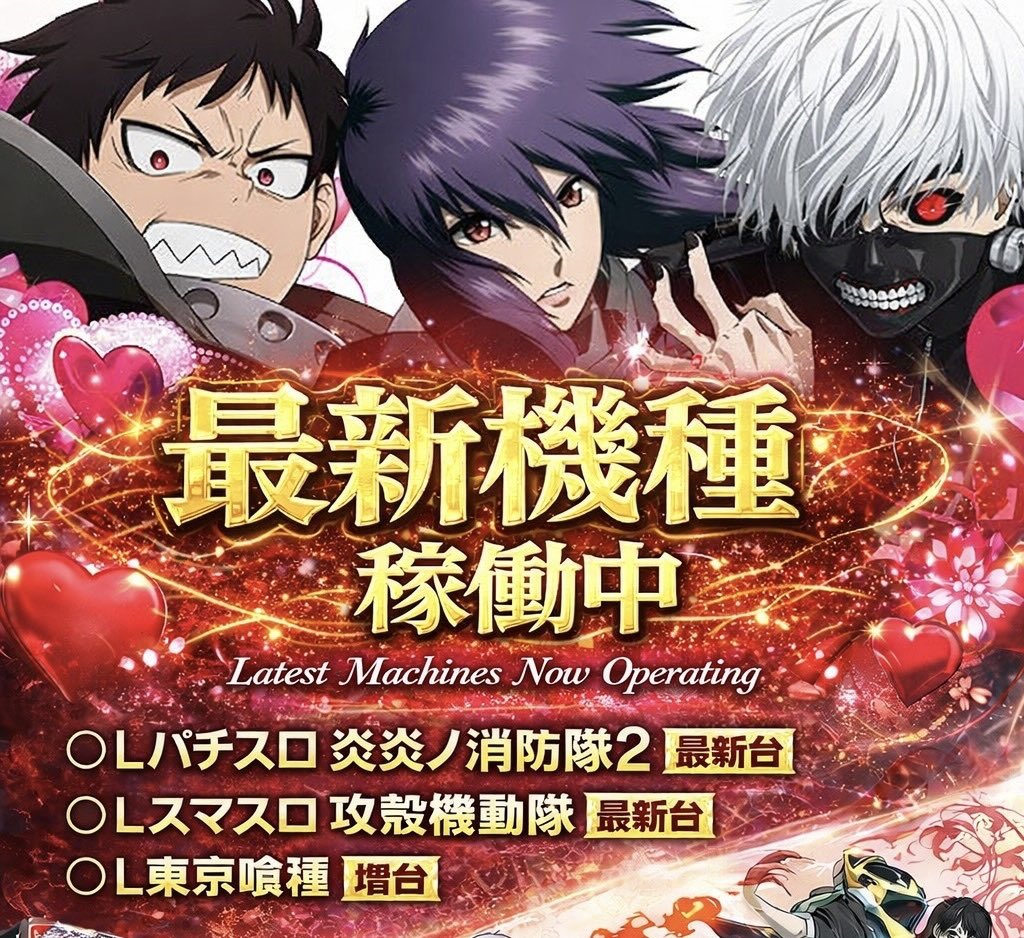 投稿本文: 📢【2/11(祝)アリーナ平塚店】おはようございます☀本日 単撃ラッシュ取材〈初開催〉 開催!🎟 入場抽選 9:40スタート■本日注目名機 L東京喰種(増台完了)最新台 L炎炎ノ消防隊2(稼働中)最新台 L攻殻機動隊(稼働中)■2月も引き続き注目L北斗の拳L北斗の拳 転生の章2 さらに表示