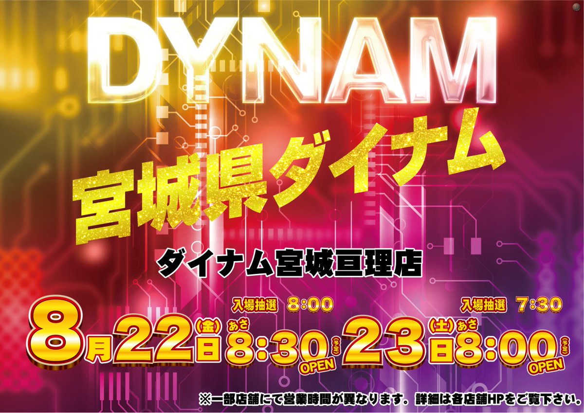 投稿本文: こんばんは!⭐⭐⭐⭐⭐⭐⭐⭐⭐⭐⭐⭐ ◤宮城県ダイナム◢8月22日(金) 8:30開店(予定)8月23日(土) 8:00開店(予定)⭐⭐⭐⭐⭐⭐⭐⭐⭐⭐⭐⭐今週末もどうぞダイナム宮城亘理店へお越し下さいませ🎵#ダイナム #亘理 #宮城県 さらに表示