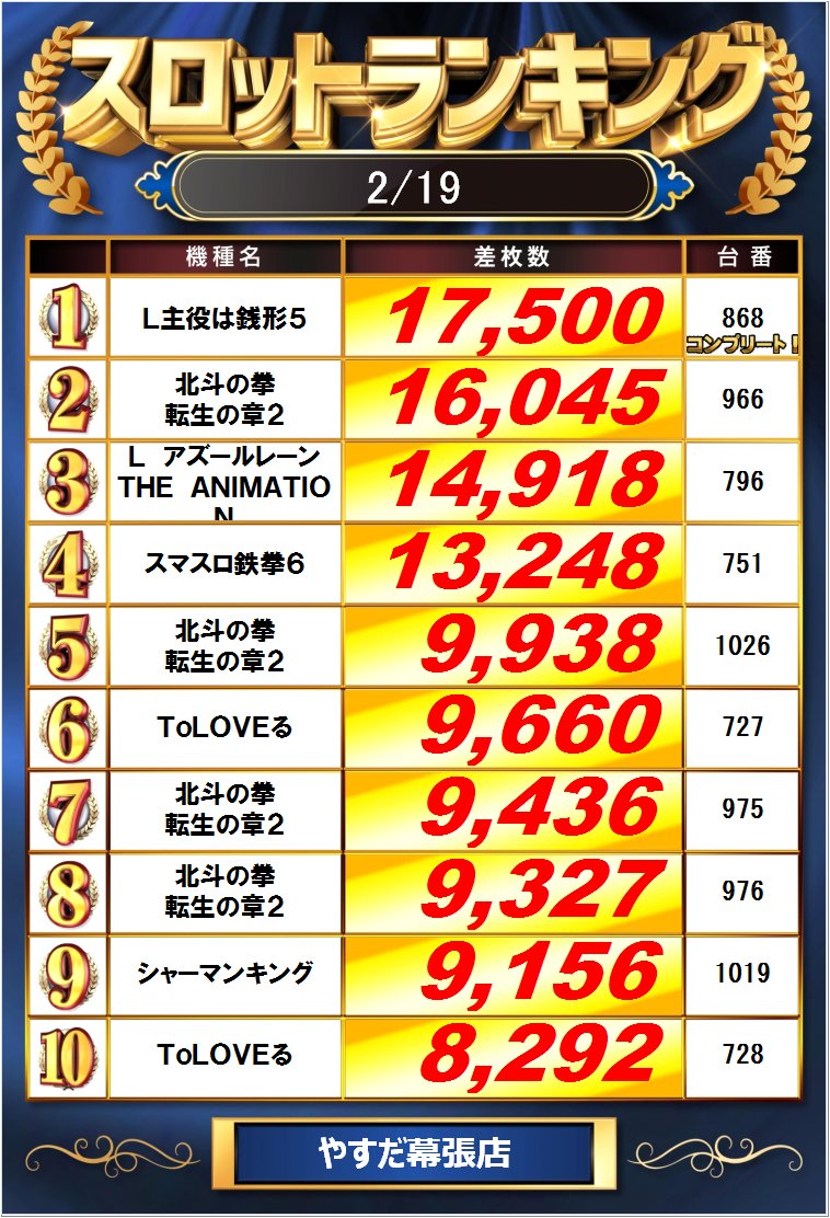 9のつく日 https://twitter.com/chiba_pachislo/status/2023683851411698159