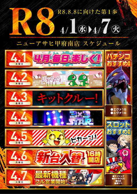 【店休日明けリニューアルOPEN 新台入替 20スロ増台】