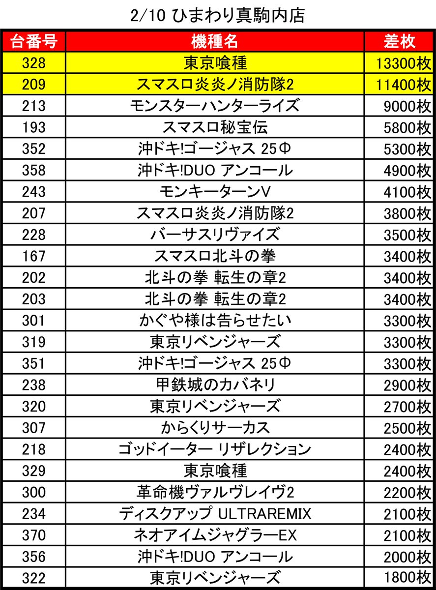 🗓️2/11 札幌出玉ランキング