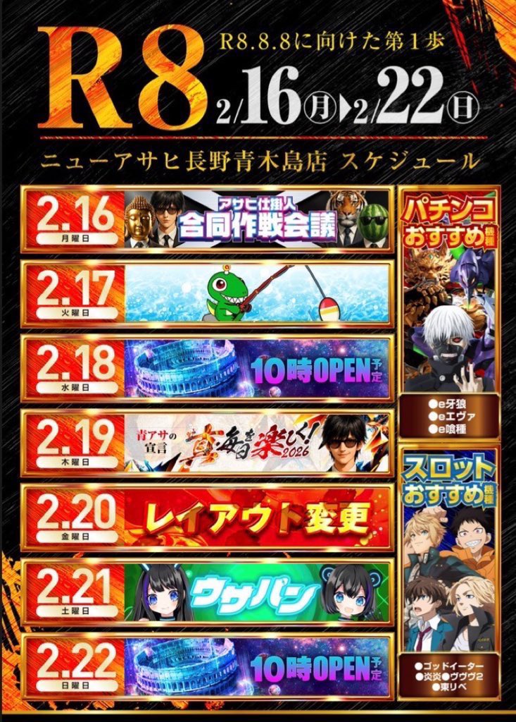 明日2月18日(水)に俺が長野で行くならここ打ァ!