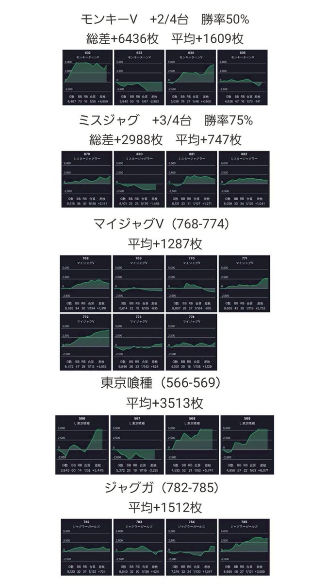 投稿本文: 7月5日(土)ゴードン西川口店5の日ちゅんげー7調査隊サキドリ来店取材フライングリサーチせぶんリサーチ32/303台(10.6%)対象台平均+2024枚【全台】モンキーⅤ2/4 平均+1609枚ミスジャグ3/4 平均+747枚【7台並び】マイジャグⅤ 平均+1287枚【4台並び】東京喰種 平均+3513枚 さらに表示
