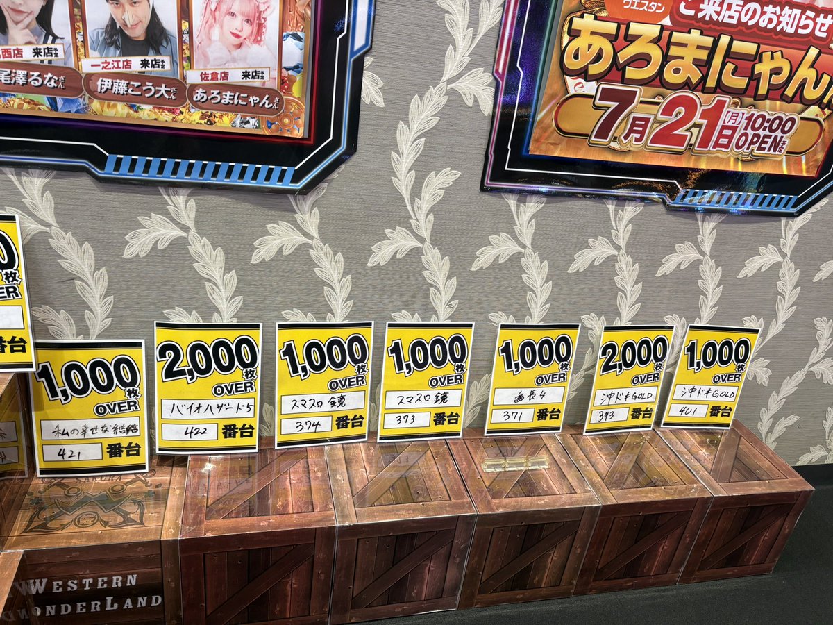 投稿本文: ウエスタン佐倉店様16時頃の店内状況です❤️🔥✅北斗の拳 5000枚 over✅ToLOVEる 4000枚 over✅戦国乙女 2000枚 over✅カイジ 2000枚 over✅ファンキージャグラー 2000枚 over✅バイオ 2000枚 over✅沖ドキ 2000枚 overその他1000枚overの台がゴロゴロありましたー! さらに表示