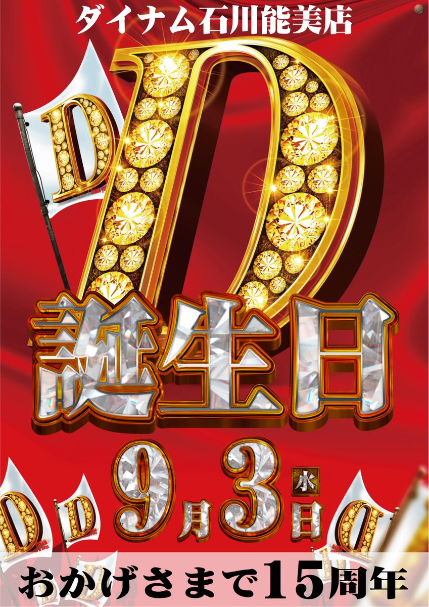 投稿本文: 本日9月3日[水] ダイナム石川能美店 お 誕 生 日おかげさまで15周年 ≫ 10時開店予定 ≪さらに新景品入荷!!入場整理券は9:30より配布予定です🎵皆さまのご来店を従業員一同心よりお待ちしております✨✨ さらに表示