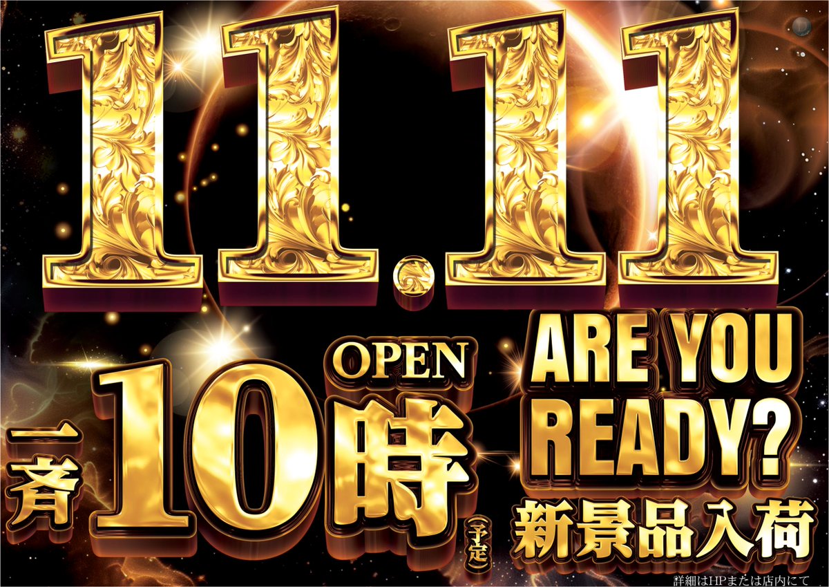 投稿本文: こんばんは!ダイナム千葉東金店です🙂 🎁🌟🎁🌟🎁🌟🎁🌟🎁🌟💥💥💥💥💥💥💥💥💥💥 11/11(火)10時開店 新景品入荷!💥💥💥💥💥💥💥💥💥💥 🎁🌟🎁🌟🎁🌟🎁🌟🎁🌟⏲️9:40 抽選開始(予定)皆様のご来店お待ちしております😊#ダイナム さらに表示