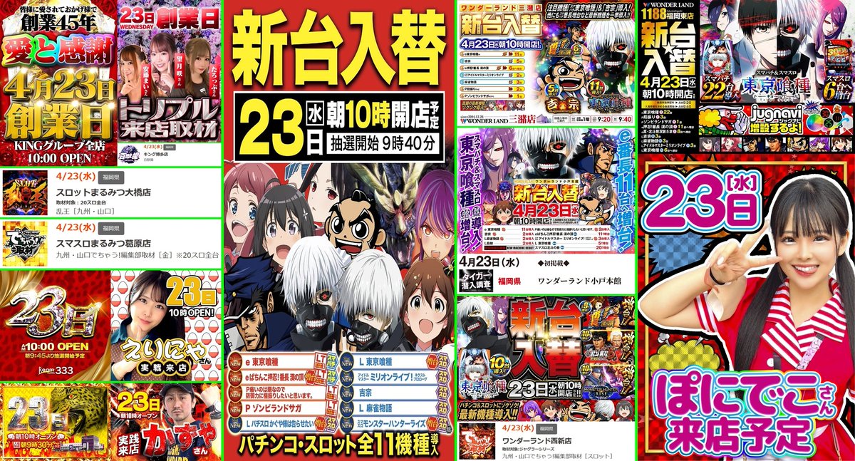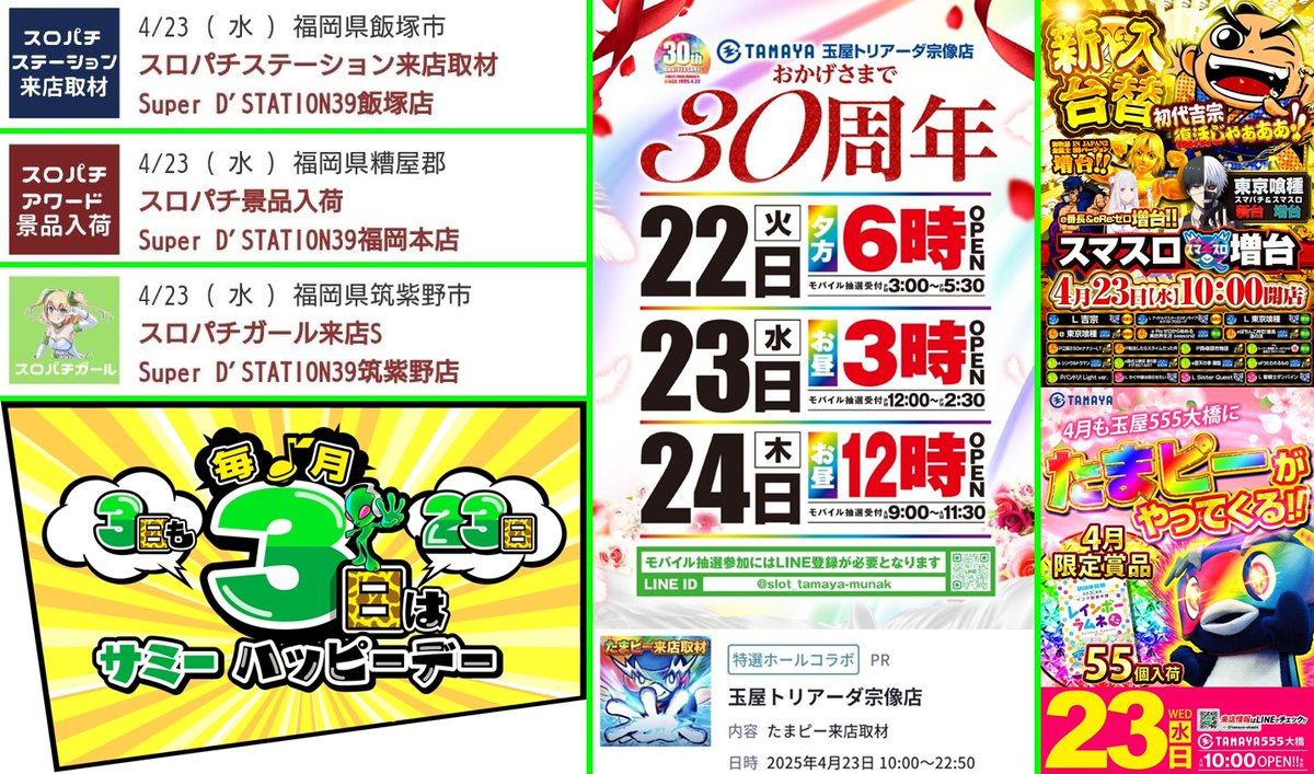 投稿本文: 4月23日 明日のオシホール①【3がつく日】メガフェイス1030伊都🍰👉周年👉📝スロパチ取材(赤)👉📹るいべえメガフェイス880博多本店👉📝PICK番付👉📝パチンコ乱王👉📹夏生ひまり👉📹スロパチガールSフェイス777遠賀🆕👉📝でちゃう取材👉📹あるかりん👉📹スロパチガールS さらに表示
