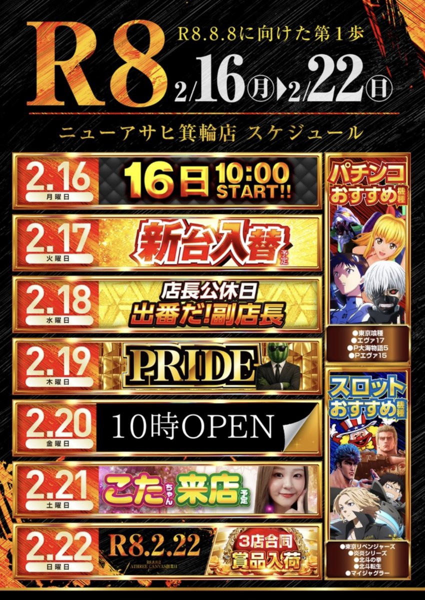2/16🌟兼続オススメホール一覧🌟