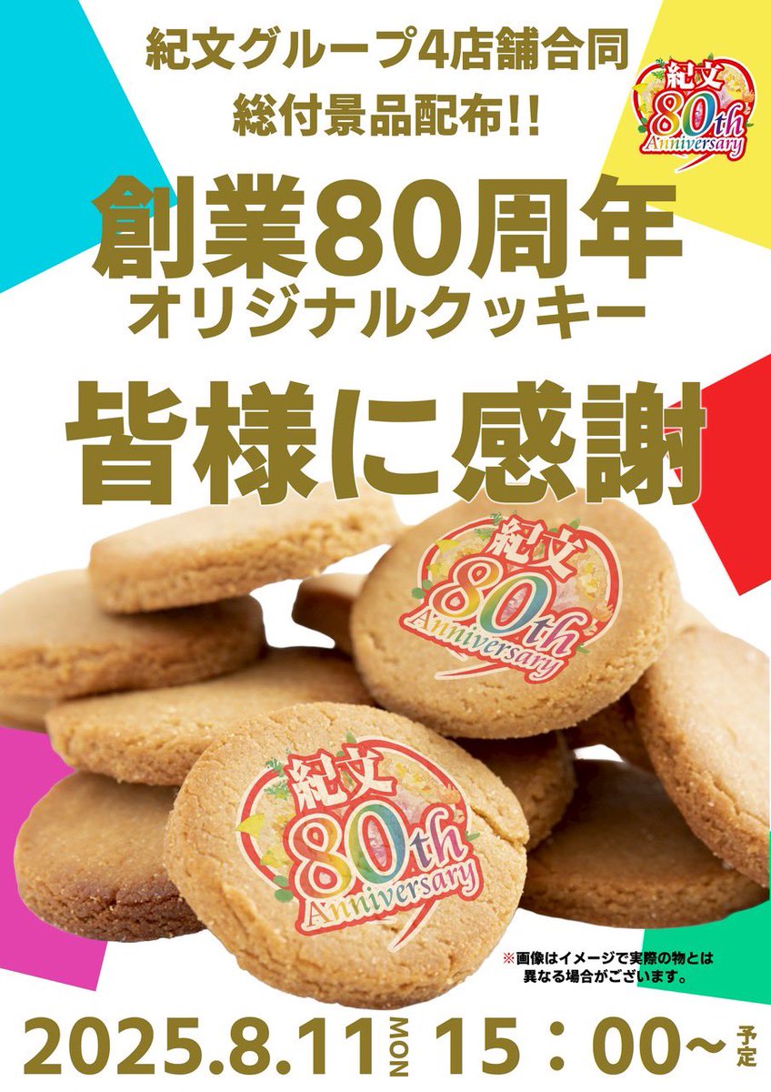 投稿本文: ■ 7プラザのお知らせ ■本日15時頃紀文グループ4店舗合同総付景品配布の予定です🎁@KIBUN_7_7_7 ちゃんと一緒に盛り上げていきます🥰創業80周年のオリジナルクッキーになっていてとっても可愛い♥️!#下呂市 #7プラザ #下呂温泉 さらに表示
