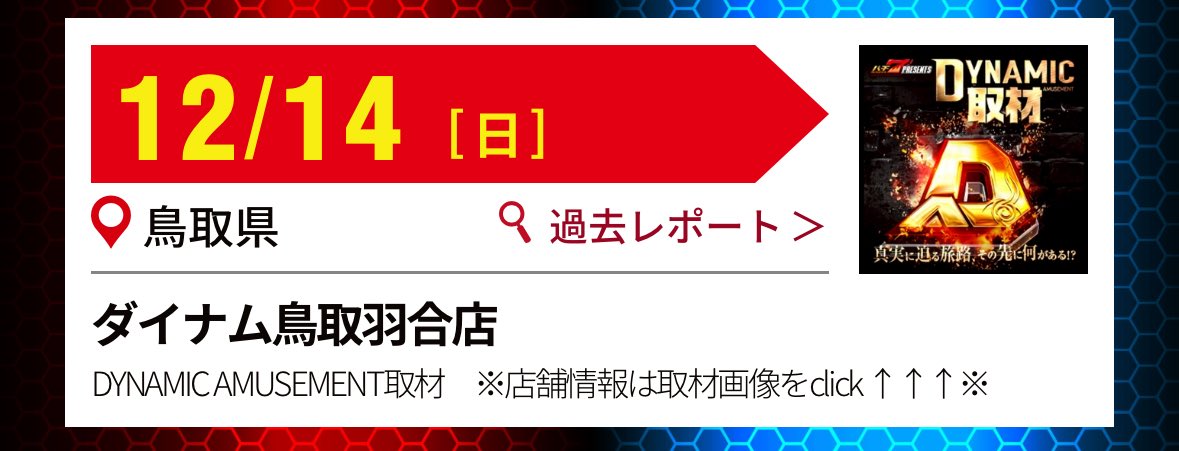 投稿本文: 🎄12月14日(日) お品書き💛鳥取県💛✧ クレイジーチャンス米子✍️ホル調✧ ダイナム羽合✍️DYNAMIC AMUSEMENT取材💙島根県💙✧ 丸三浜山✍️REAL取材✧ UFO菅田👤Lua来店 さらに表示