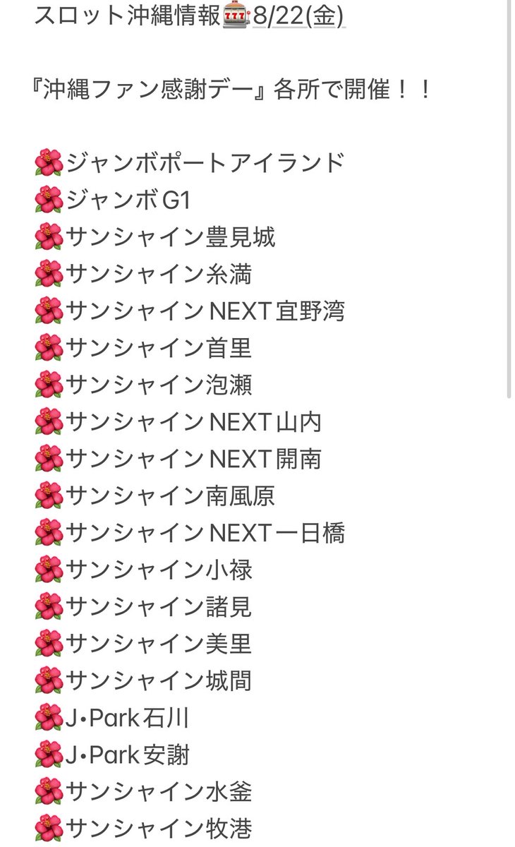 🌺詳細は下記すろっと沖縄オプチャでーす🌺