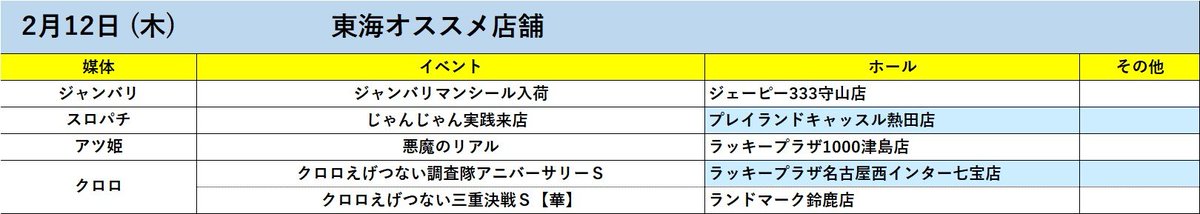 投稿本文: \\\2月12日(木)オススメ店舗///✅プレイランドキャッスル熱田店🔥✅ラッキープラザ1000津島店🔥✅ラッキープラザ名古屋西インター七宝店🔥✅ジェーピー333守山店✅ランドマーク鈴鹿店 さらに表示