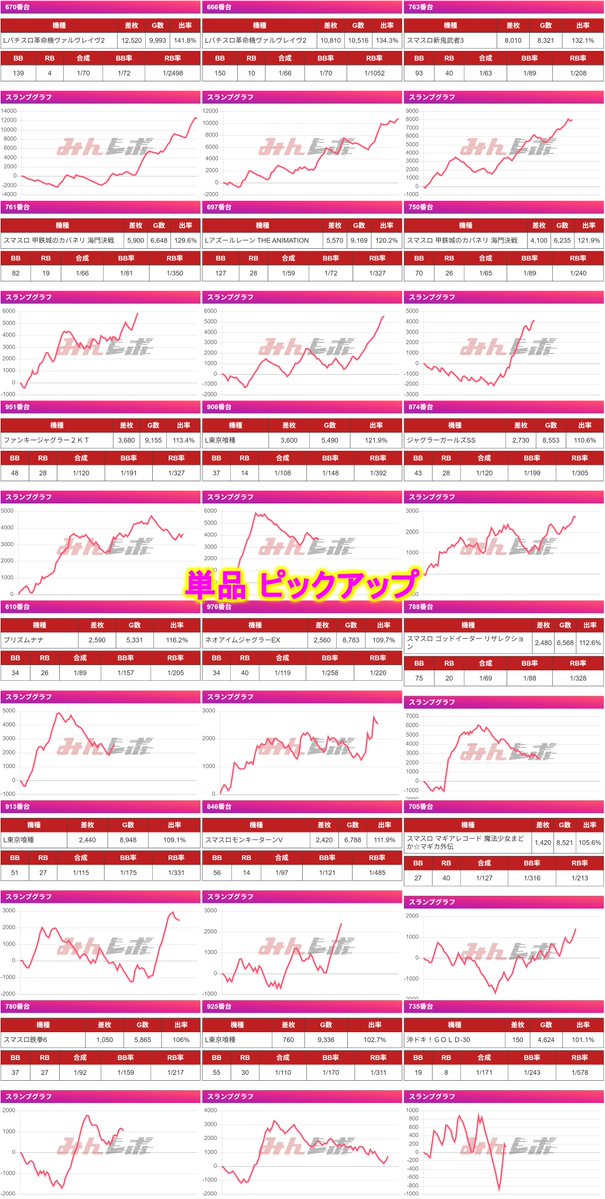 投稿本文: 📢みんパチ速報🏠ALIVE東海南店3/21 営業結果まとめ・特定日(1のつく日)――――――――――――■スロット総差枚+33,360枚台平均+94枚【全台系】・スマスロ北斗平均+1,038枚 勝率(7/10)――――――――――――①のつく日らしく幅広くどこにでもチャンスある状況になっていたと思います! さらに表示