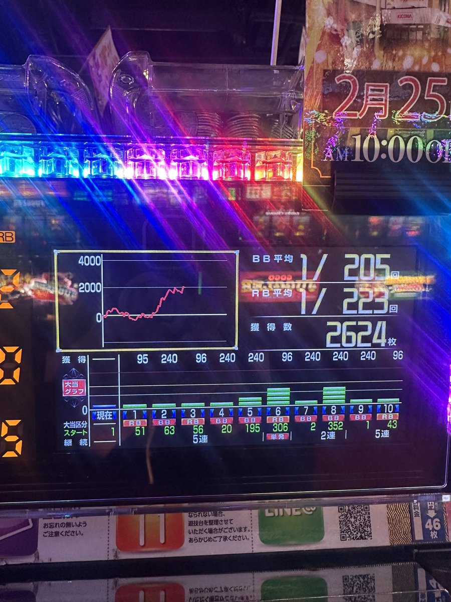 実践はドラマがあったけど、民度の低さで気持ちよく終われないことが多いホールだと再実感。どうしても外人の悪行が目立つ。でも、そういう人からもお金取らないとやっていけなさそうで、私達は我慢。精算機の割り込みも酷かった。