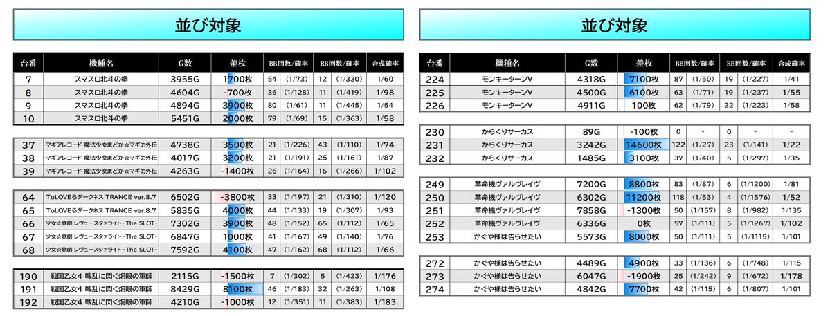 並び仕掛けは全系やメイン機種が絡みやすくなってるので狙いやすい🙆♀️