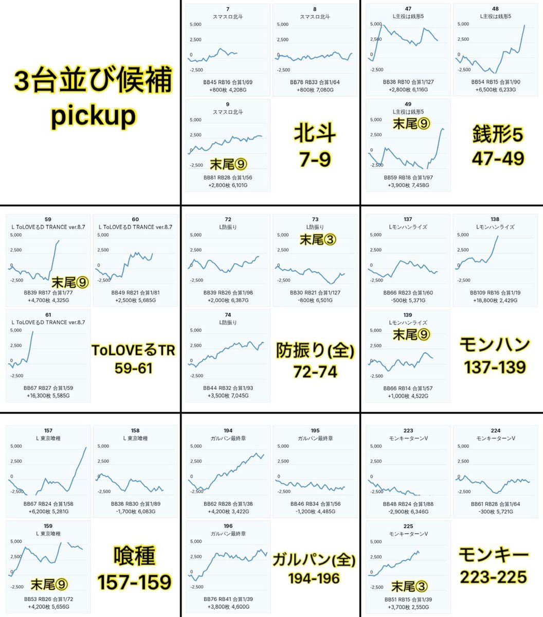 小河原店長就任後は4台並びが末尾4.0絡みになる事が多いのでまずはここから狙いましょう✨
