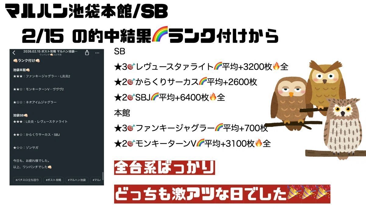 (2/21)🌈🌈🌈マルハン池袋本館&SBの予想(完成版)