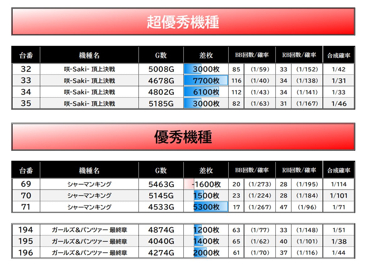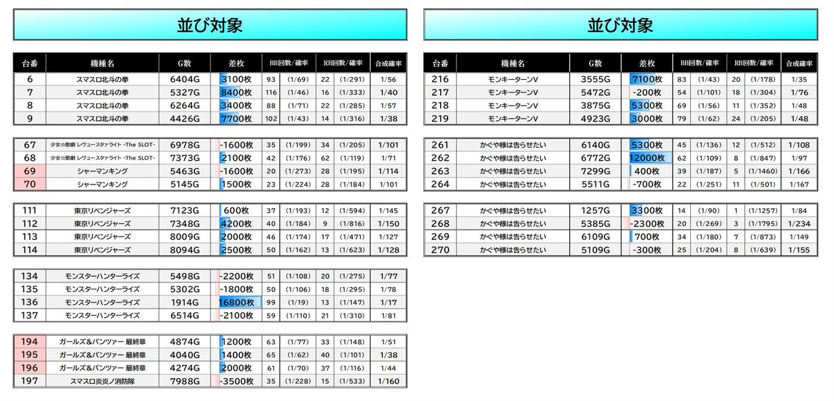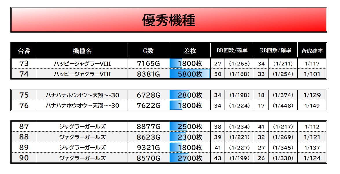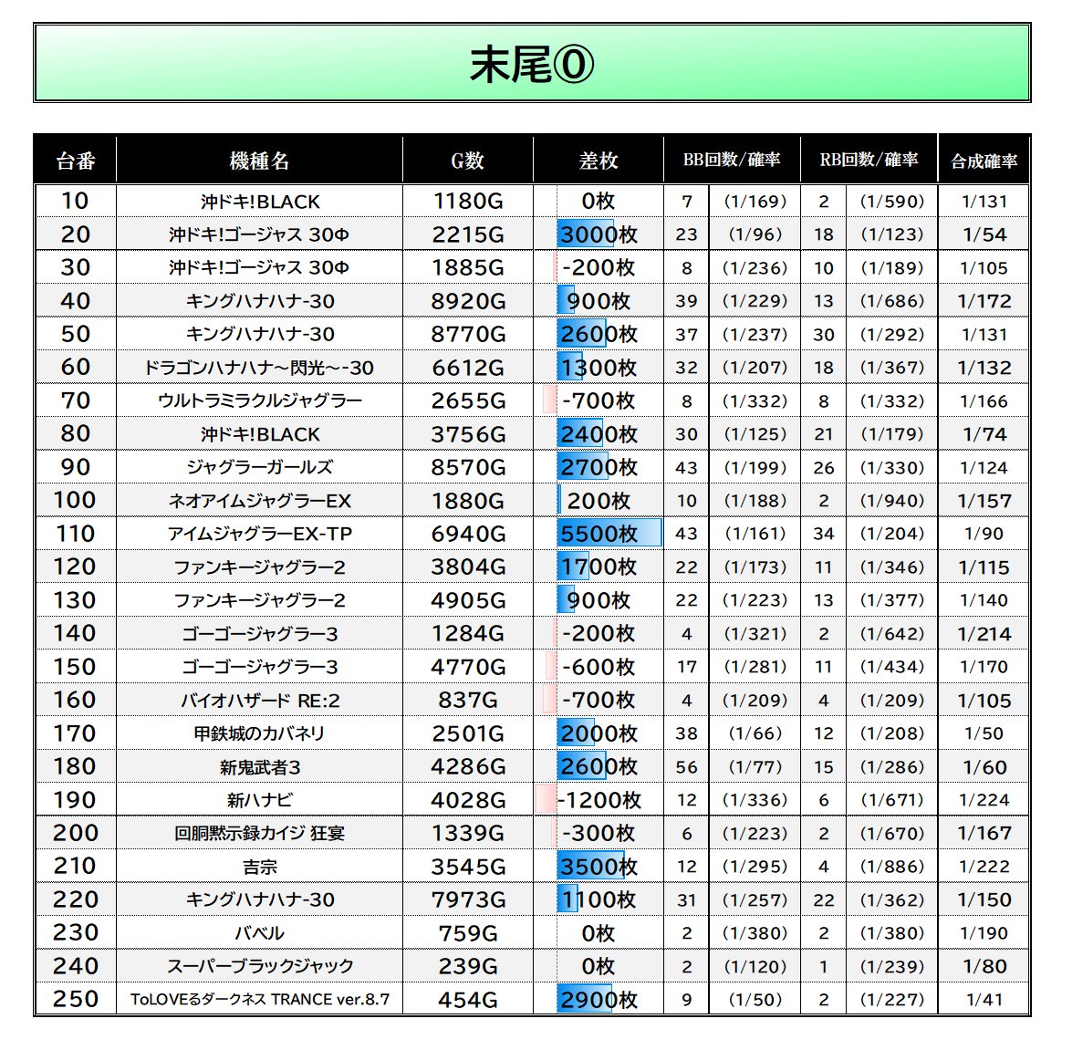 その他末尾⓪が強化で平均差枚が1000枚over!!✨