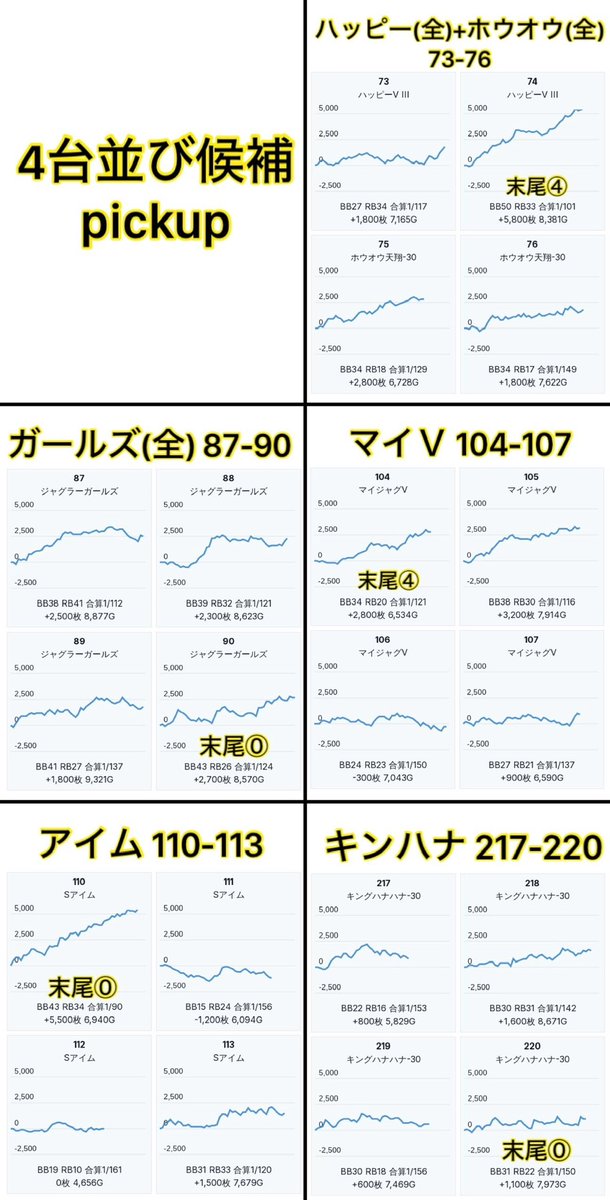 末尾④⓪絡みの並び+本館はジャグ、沖スロが対象のほとんど。機種と台番を絞るとかなりイージー😎