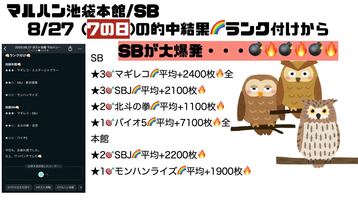 🎯【結果】10/19マルハン池袋SB・本館🎯