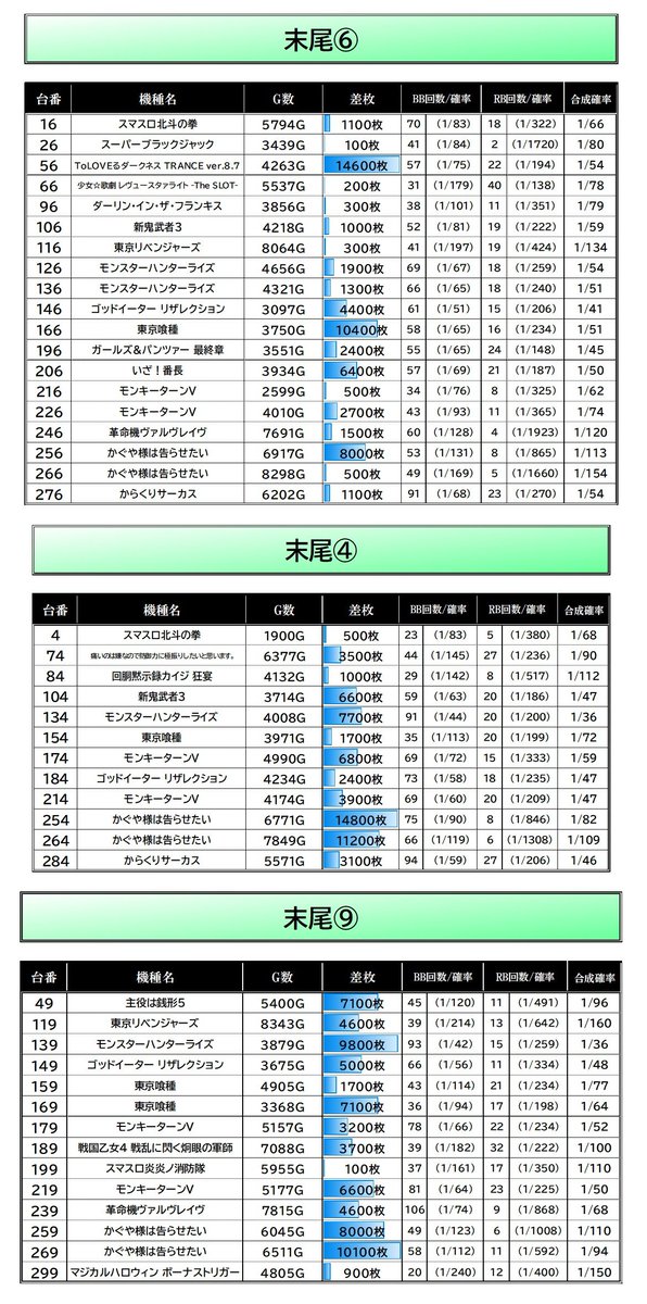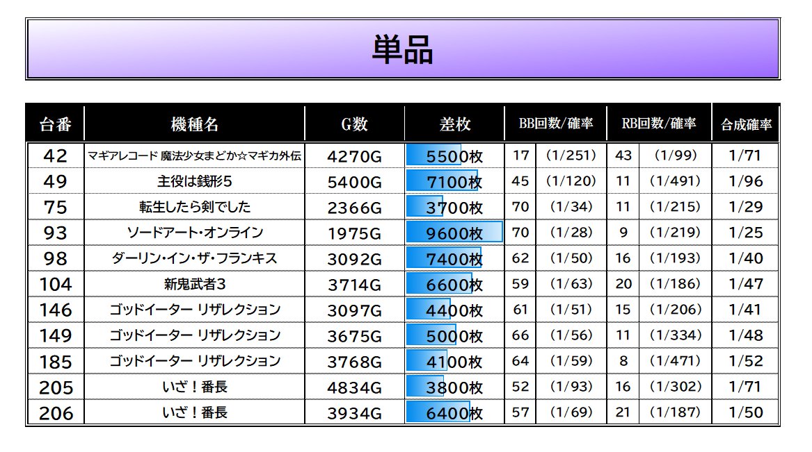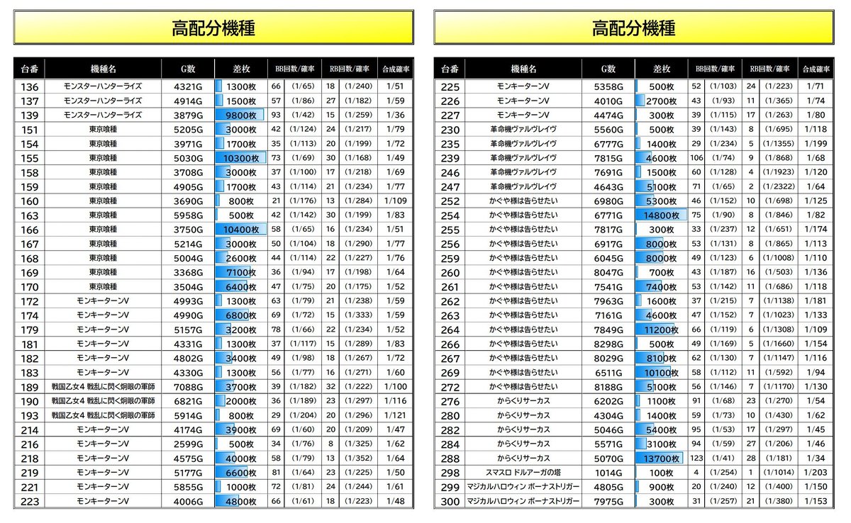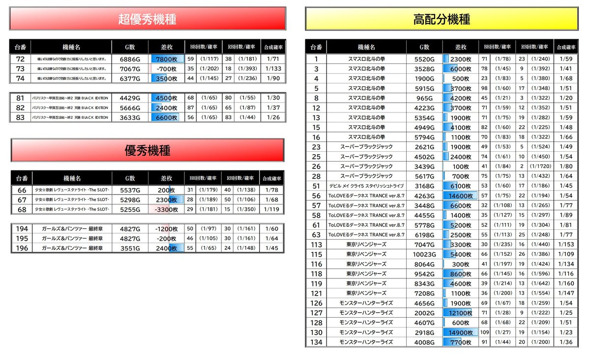 超優秀機種の平均差枚が素晴らしい結果だったね👏