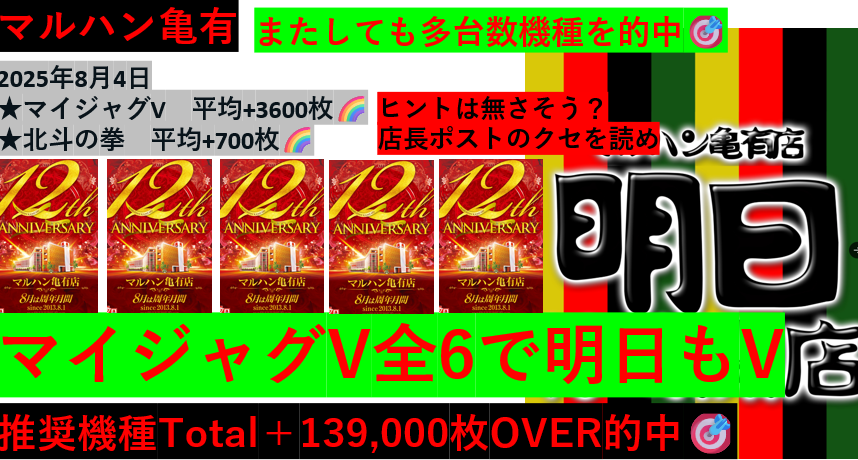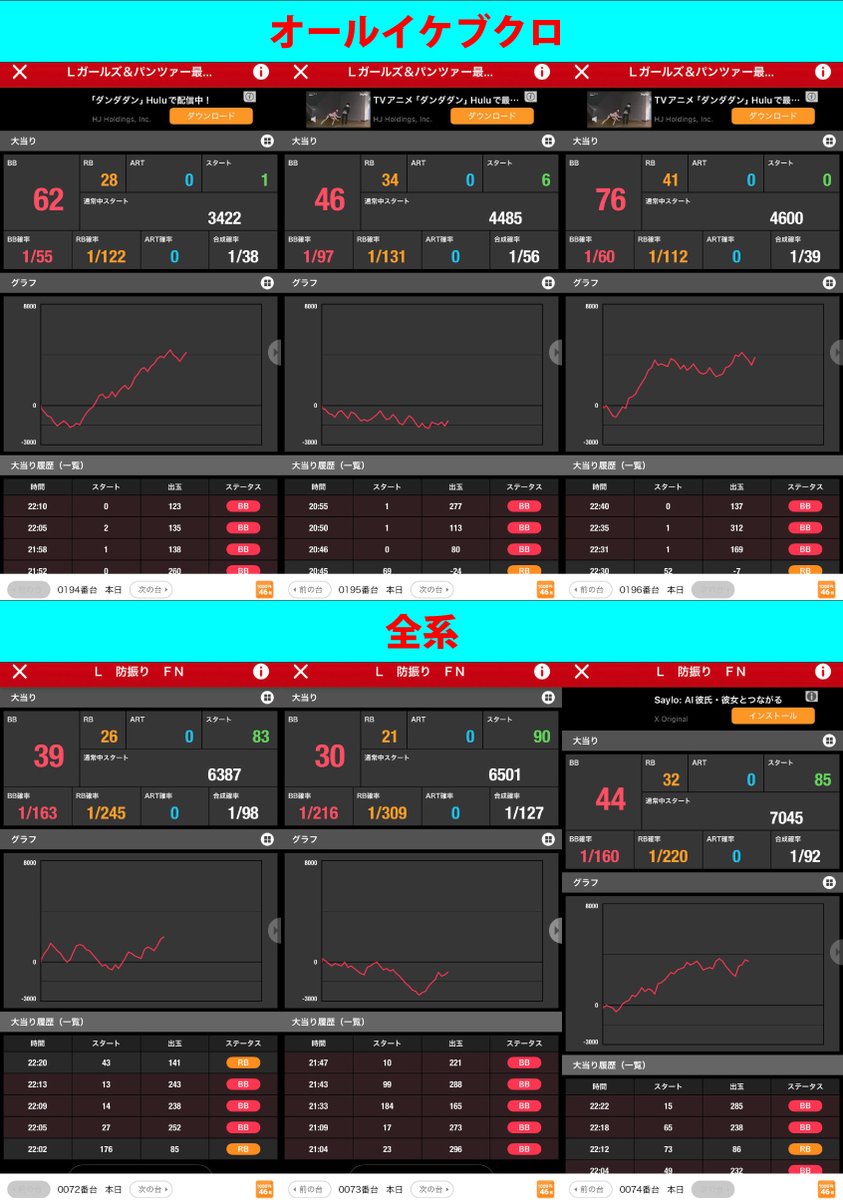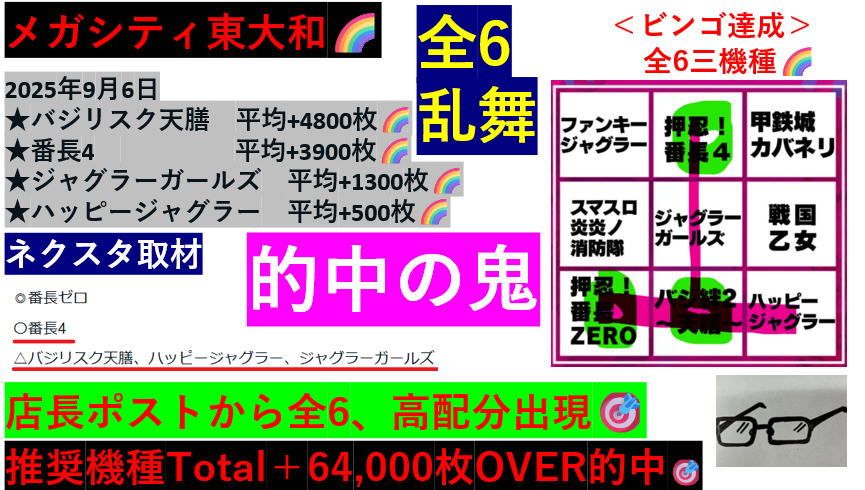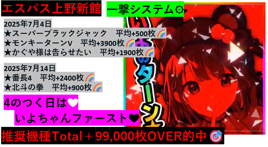 小河原店長就任後は4台並びが末尾4.0絡みになる事が多いのでまずはここから狙いましょう✨