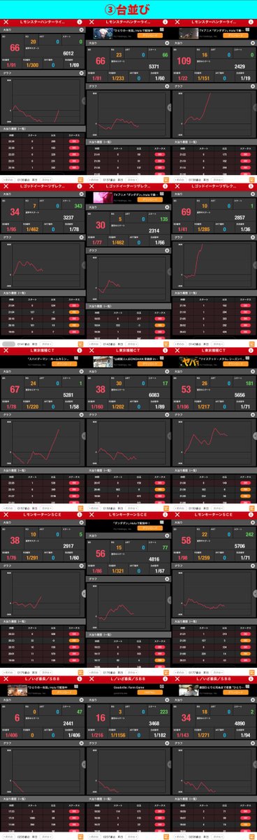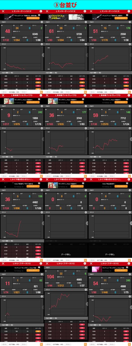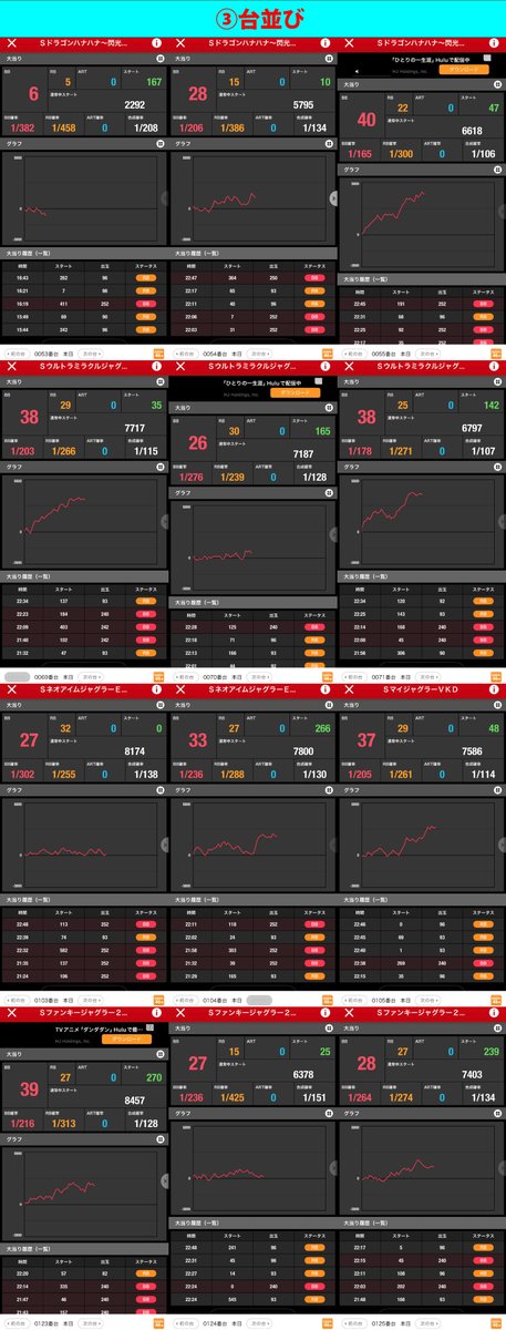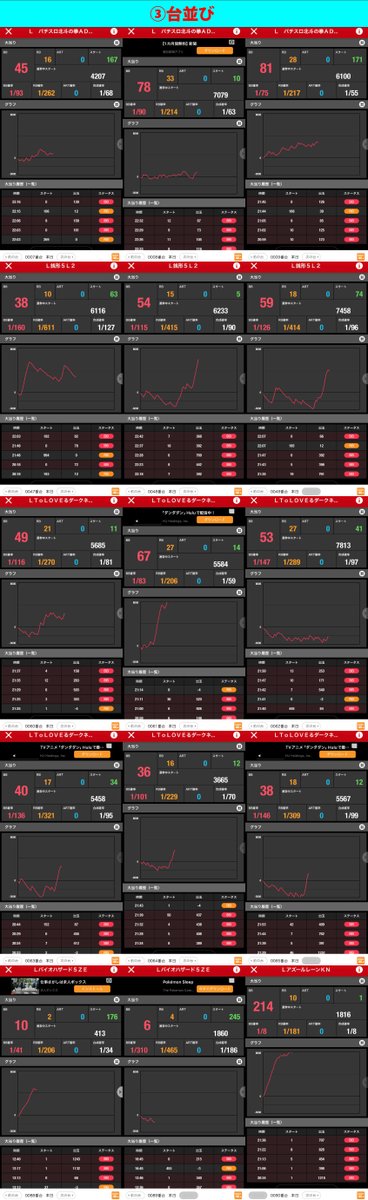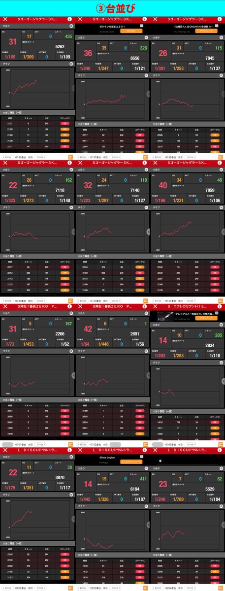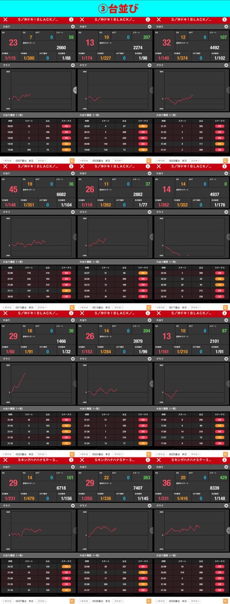 スロべ同様に末尾③⑨に絡む並び箇所が多い。またジャグ、沖スロは並び、単品とも数多く狙うならこの2シリーズからが⭕️