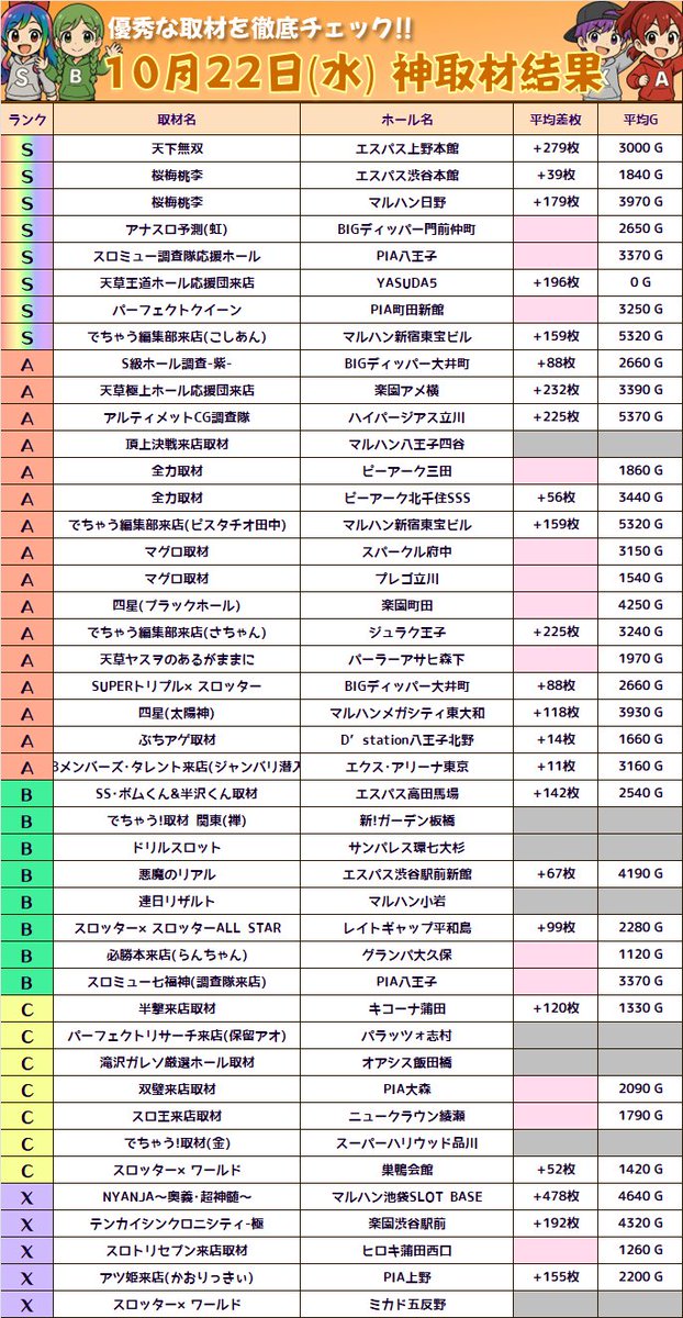 平均差枚ランキングまとめ