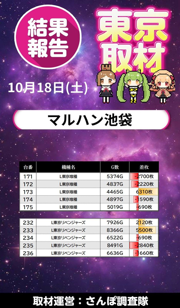 マルハン池袋/メガシティ 蒲田7/亀有/エスパス 新宿 歌舞伎 町/渋谷新館 https://twitter.com/onePunch0101/status/1981418355073659057