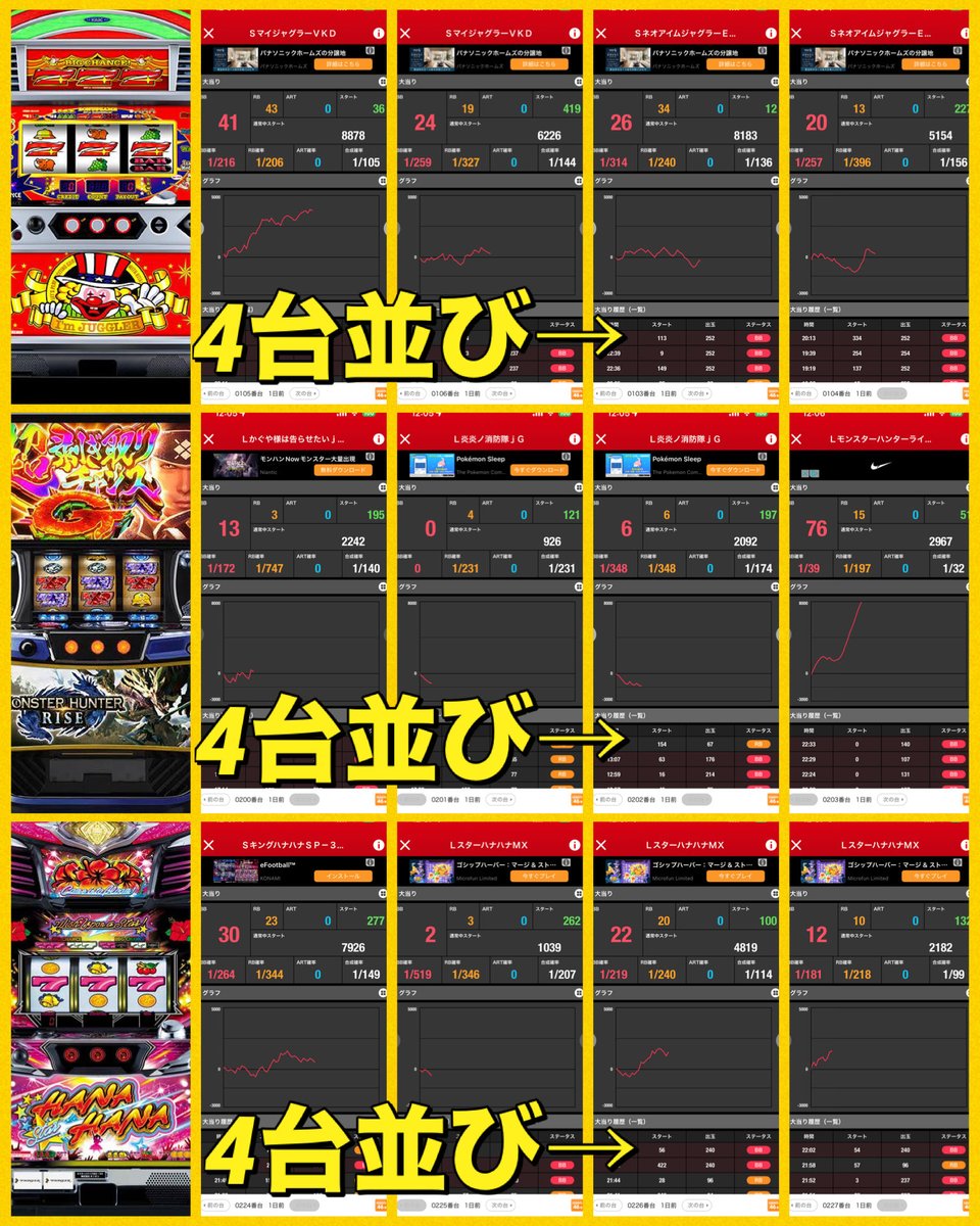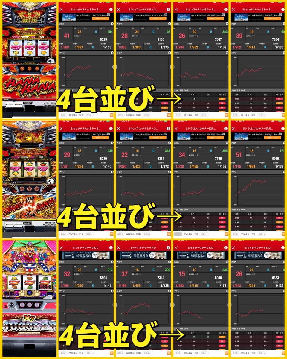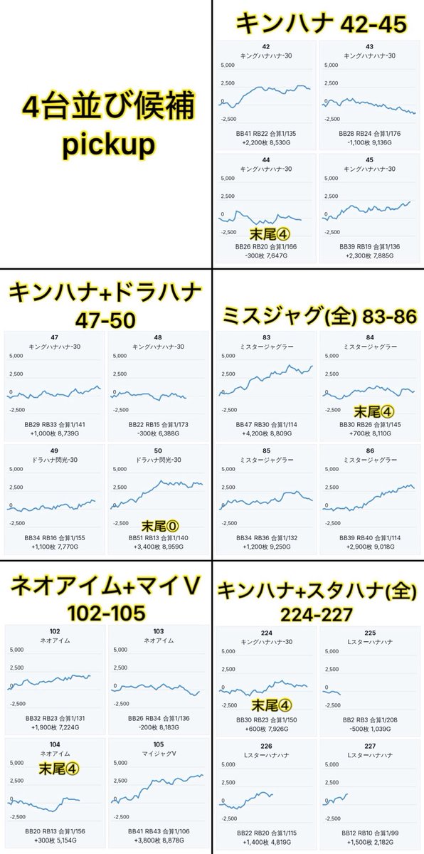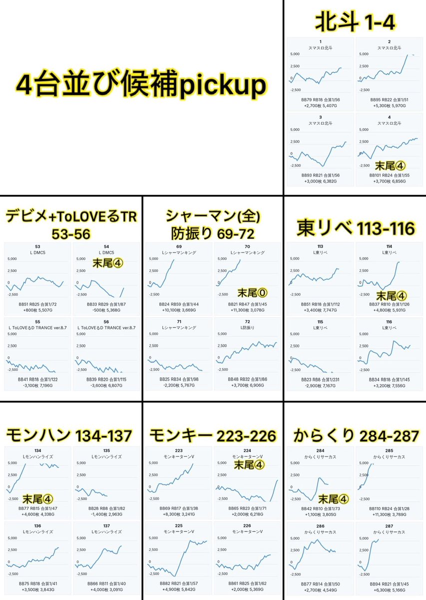 4のつく日の4台並びは末尾④⓪を優先的に狙っていけば大丈夫なのでかなり攻めやすい🙆♀️