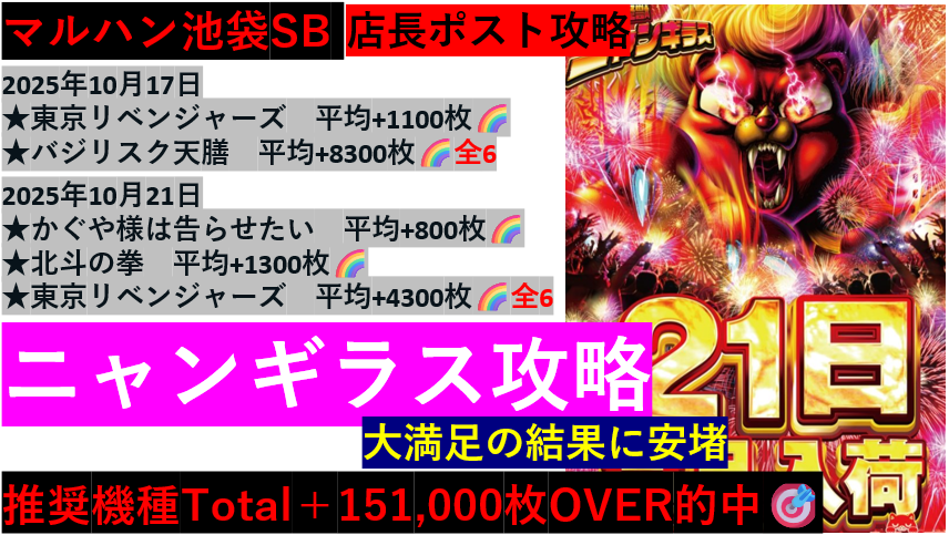 🎯【結果】10/25マルハン池袋SB・本館🎯
