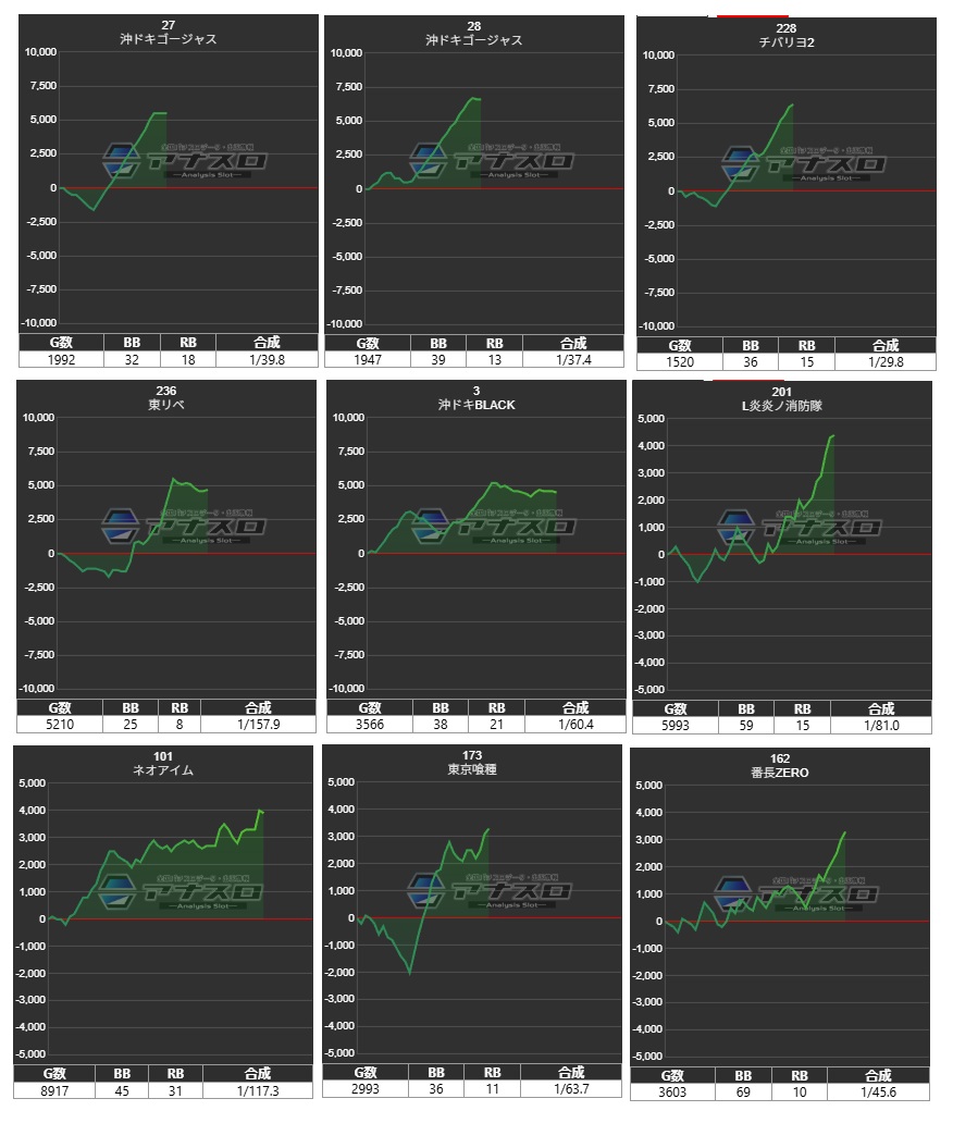 ジャグ、沖スロ中心にとにかくベースが高いのが特徴。