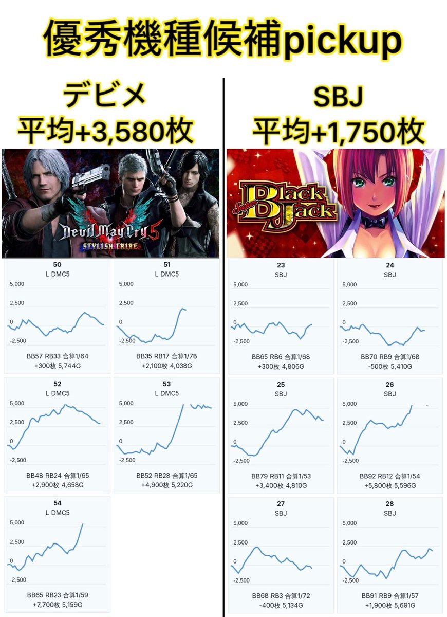 (激)推し機種と回避推奨機種を選定。
