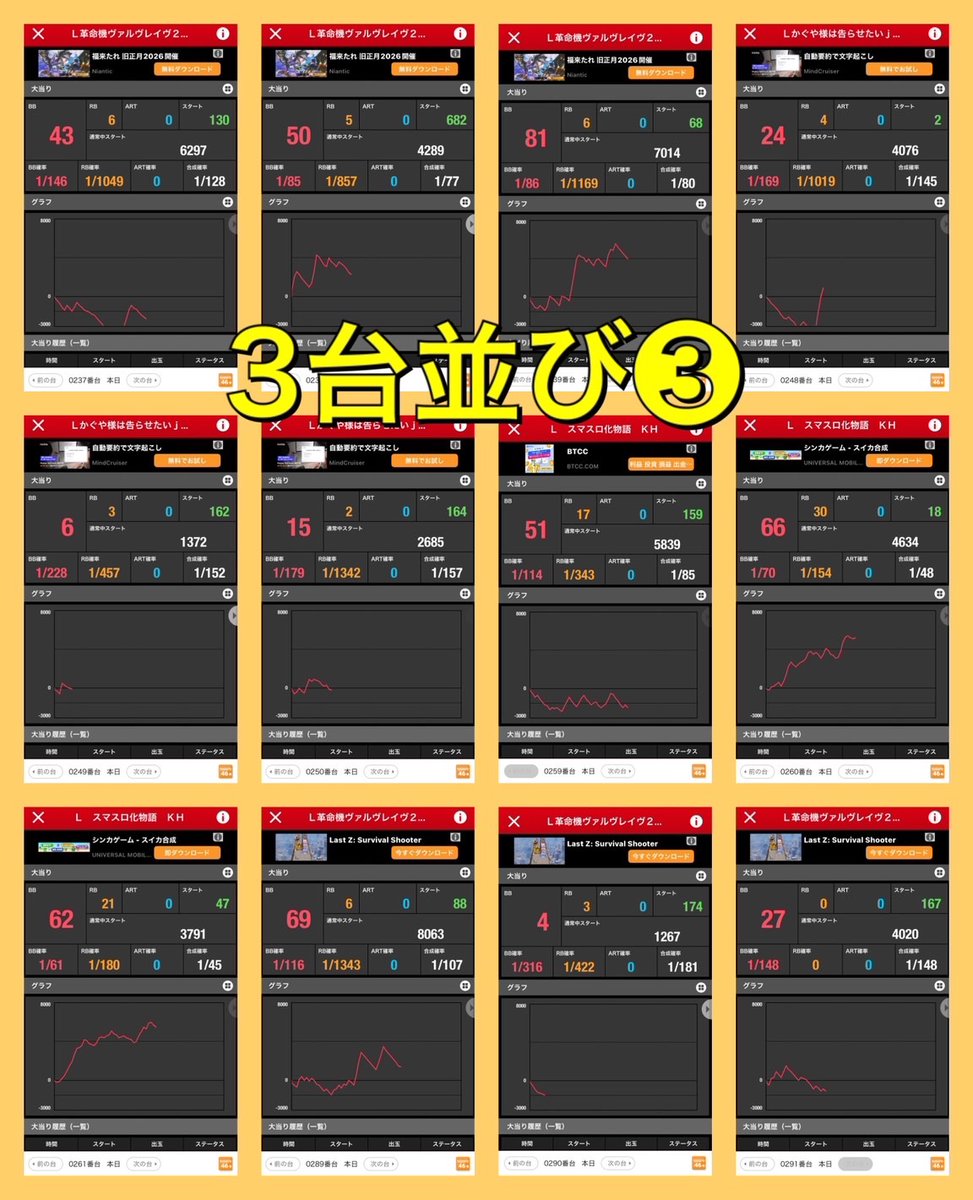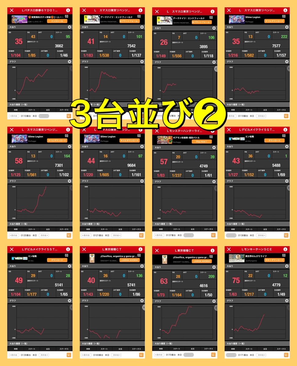 6連以上になることや同一機種で複数箇所仕掛けを作る頻度も高いので意識しておくのが大切。 https://twitter.com/sloevekanto/status/2024608510865264763