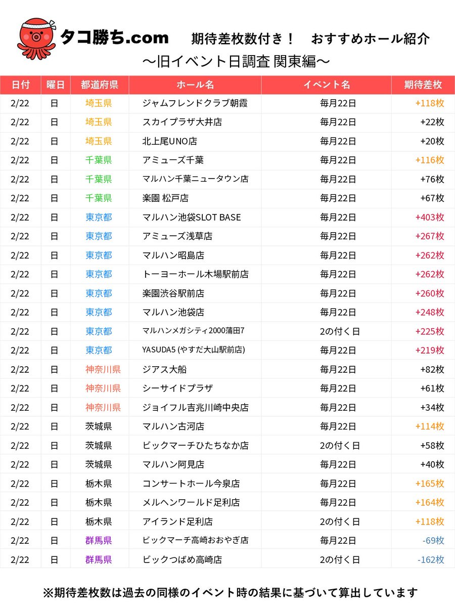 【マルハン池袋SLOT BASE】2026/2/22(日)高設定機種予想【パチスロデータ分析】|設定大好き!シゴロちゃん 🎲