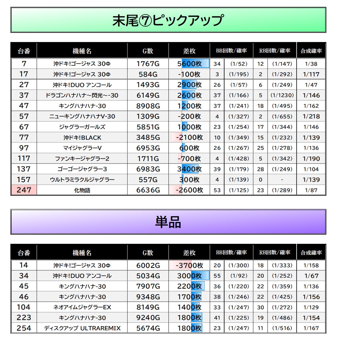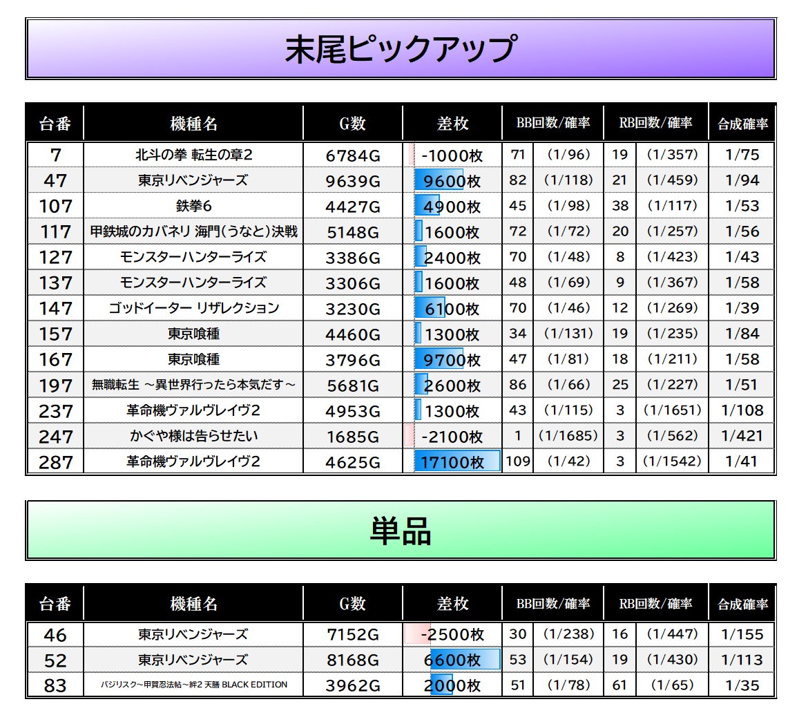・末尾仕掛け/単品からも好調台確認🔍
