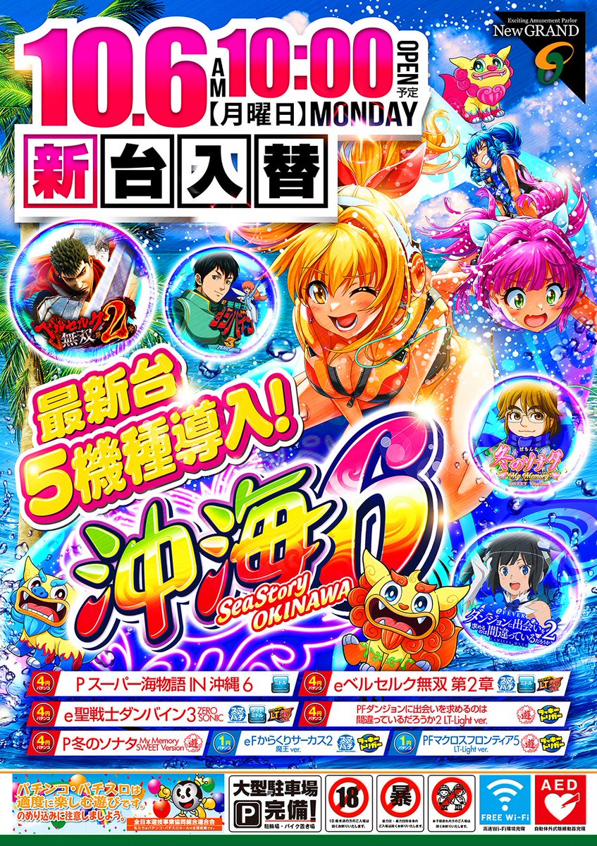 ✅沖海6&新鬼武者3の話題機種をはじめ10/6㈪に計❽機種導入済‼️