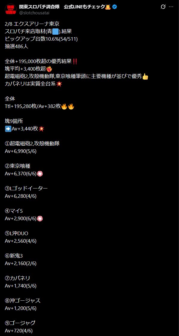 塊Av+2,400枚/全体Av+90枚🔥 https://twitter.com/slotchousatai/status/2024394129049059744