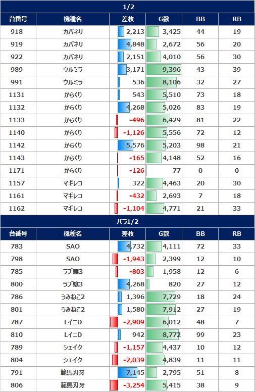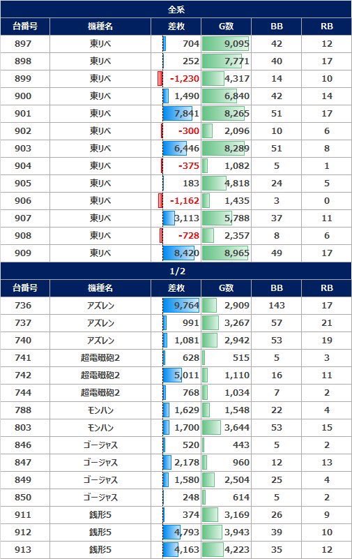 機種別の強弱・台番号・凹み・新台・増台など分析しました!