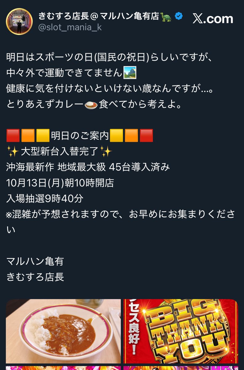 ➡️明日はお馴染みのタイガー来店取材のW開催でP.S共に期待できる状況となりますね🐯 https://twitter.com/dragon_tiger_x/status/1977207595921445290