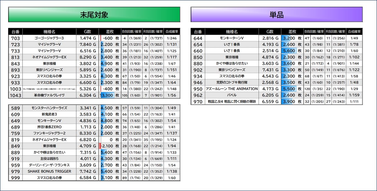 メイン系は勿論のことジャグの9台並びも傾向通り😎