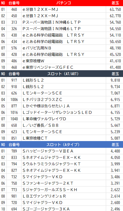 🏆昨日の出玉ランキング🏆