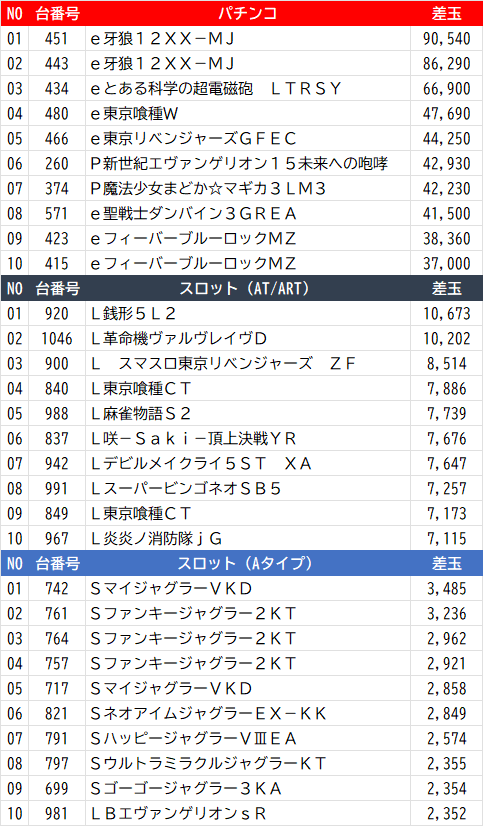 🏆昨日の出玉ランキング🏆